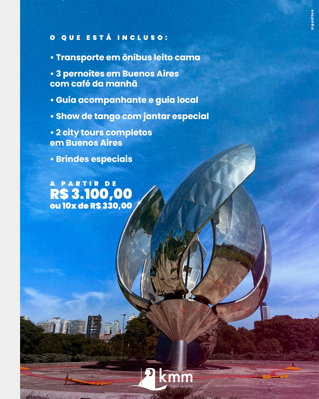 R$ 3.100,00 por pessoa à vista. Consulte condições de parcelamento: em até 10x de R$ 330,00.