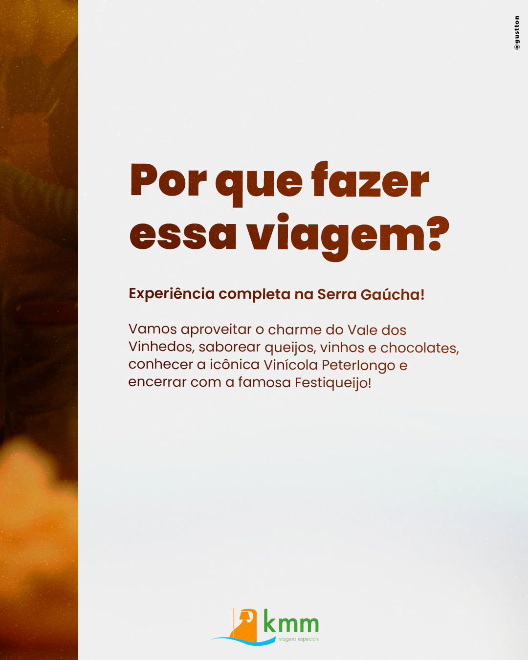 Venha vivenciar o melhor da Serra Gaúcha! Começando pelo Vale dos Vinhedos, visitando queijarias, chocolates e a única fábrica de champanhe do Brasil, em um verdadeiro castelo!