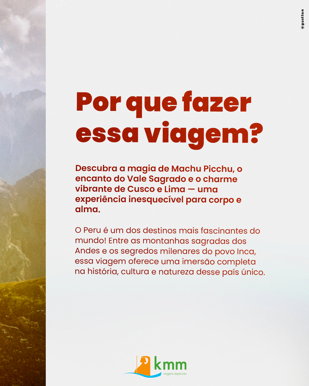 Um dos países mais belos do mundo! Com belezas naturais da Cordilheira sagrada dos Andes, e belezas históricas dos povos incas.