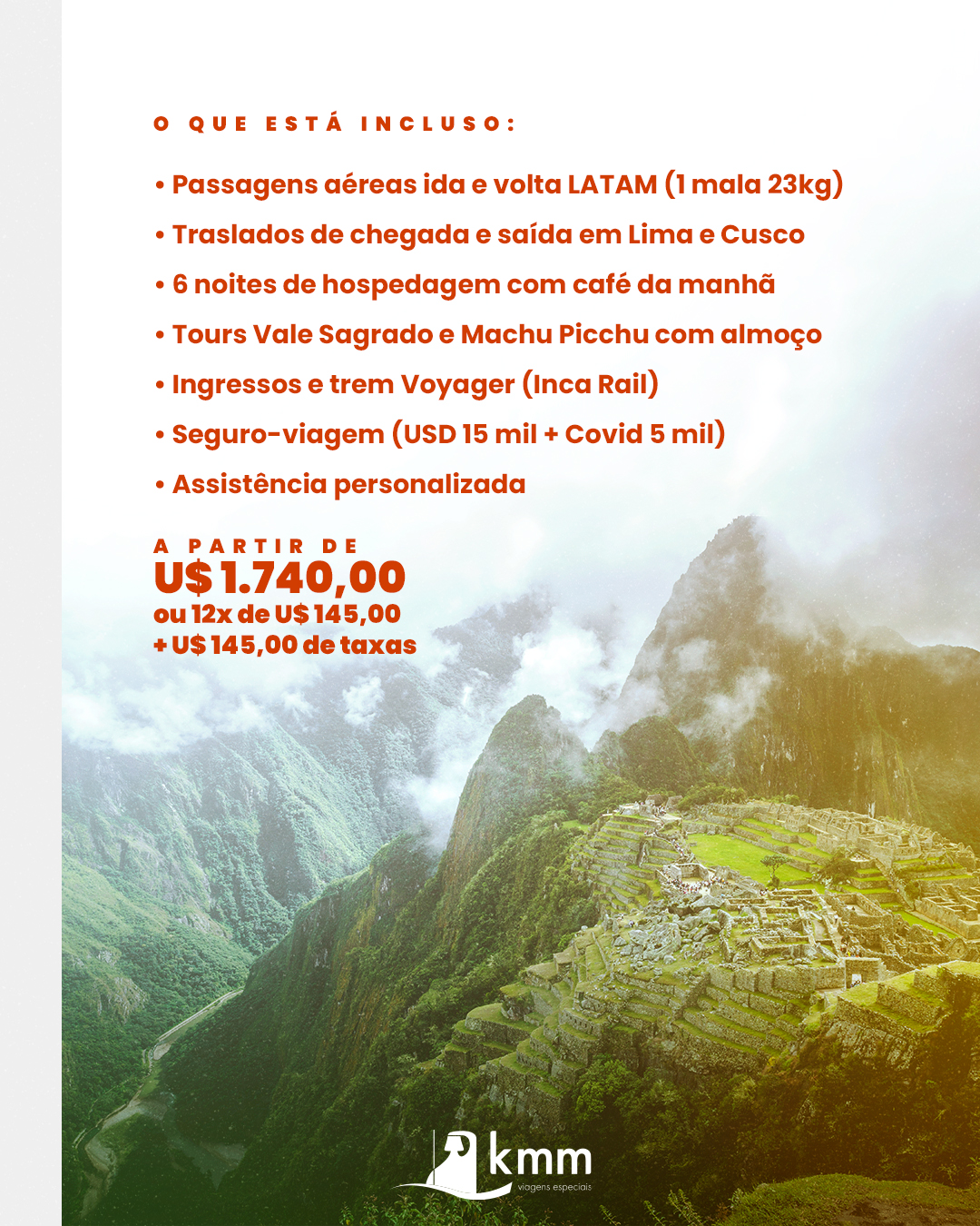 Lima - Cusco - Vale Sagrado - Machu Picchu