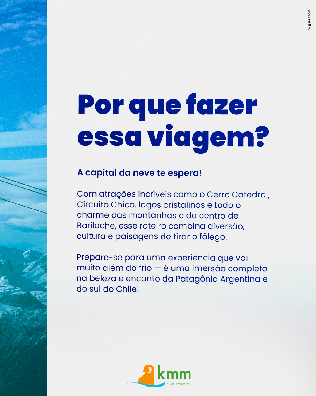 A capital da neve! Com dezenas de atrações como o Cerro Catedral, Circuito Chico, lagos incríveis e todo o charme do centro e da neve, tenho certeza que Bariloche vai te surpreender!
