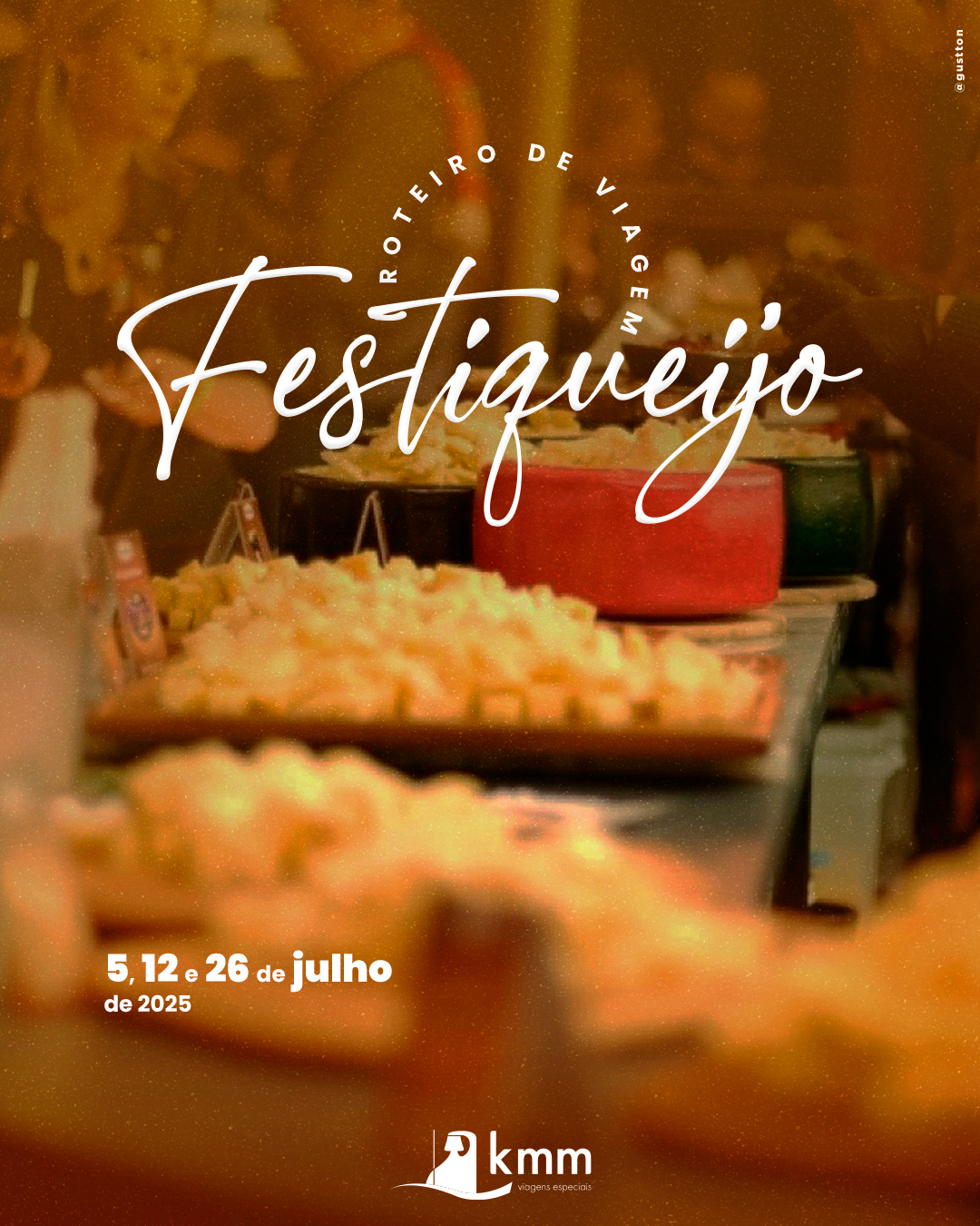 E por fim, a parte mais esperada do roteiro: a Festiqueijo! Uma festa repleta de gastronomia, música e muita diversão, onde você poderá desfrutar de uma grande variedade de queijos, vinhos e espumantes, além da saborosa gastronomia italiana, ao som de muita música e diverão.