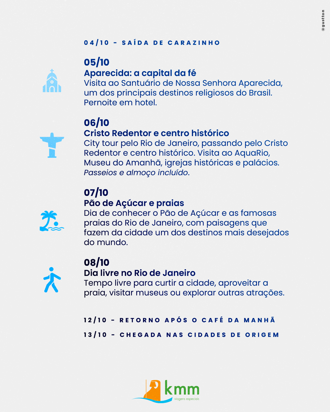 inicio do retorno após o café da manhã. Previsão de chegada na madrugadadia 10/10.