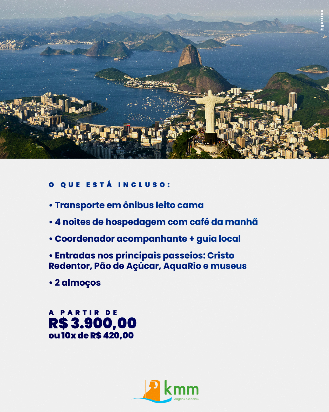 - Entradas em todos os passeios mencionados - Pão de açúcar, Cristo Redentor, AquaRio, Museus.